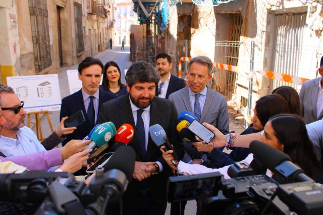 "Este martes, 8 de abril de 2025, es ya una fecha histórica para Lorca, para los lorquinos, ya que comienza oficialmente la recuperación del casco antiguo con el inicio de la rehabilitación de la Casa de los Marín Pérez Monte, que acogerá el primer edificio municipal de viviendas para jóvenes en el recinto histórico". Así de tajante se ha mostrado el alcalde, Fulgencio Gil Jódar, durante el acto de comienzo de las obras de recuperación de un viejo inmueble de la calle Selgas esquina con Fernando V.