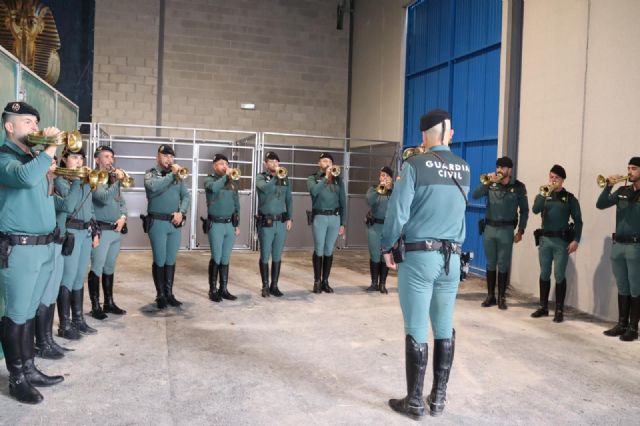 El Grupo de Caballería de la Guardia Civil ha estrenado de forma oficial esta tarde la nueva nave de la Hermandad de Labradores, Paso Azul, que alberga a la Comisión de Caballos, el Grupo Joven y las bandas de música, en un acto que ha contado con la presencia del presidente de la Hermandad, Miguel Ángel Peña, el alcalde de Lorca, Fulgencio Gil, y el teniente XXXX Gavilán, oficial al mando del Grupo en su desplazamiento a la ciudad para participar en la procesión de Viernes de Dolores. Para conmemorar este hito se ha instalado una placa conmemorativa en el interior de la nave, que deja constancia histórica del evento, puesto que los 20 caballos que conforman la expedición de la Benemérita son los primeros ejemplares acogidos en las nuevas instalaciones.
