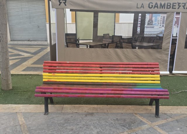 La asociación Lorcaíris LGTBIQ+ ha denunciado públicamente esta mañana la vandalización del banco arcoíris situado en la vía pública, el cual ha amanecido hoy, sábado 31 de enero, parcialmente cubierto por pintura con los colores de la bandera de España. Desde el colectivo se considera este acto un ataque directo a la visibilidad y a la dignidad de las personas LGTBIAQ+ en el municipio.