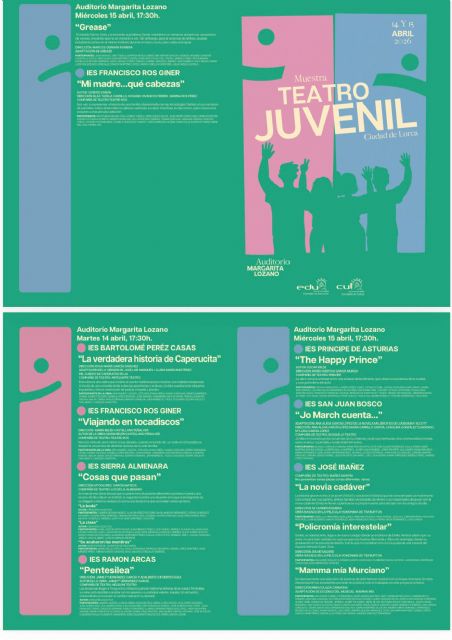 La edil de Educación, Rosa María Medina, ha explicado que "concretamente, serán los alumnos de los institutos Francisco Ros Giner, Sierra de la Almenara, San Juan Bosco, José Ibáñez Martín, Bartolomé Pérez Casas, Príncipe de Asturias y Ramón Arcas Meca los que pongan en escena las obras que han preparado en los talleres de teatro que se imparten en dichos centros durante el curso".