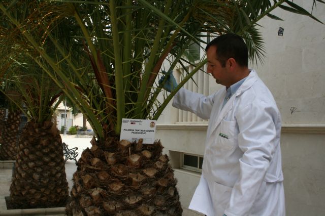 El Ayuntamiento de Lorquí de la mano de la Concejalía de Sanidad ha puesto en marcha una campaña de fumigación para tratar las 450 palmeras que hay en el municipio contra la amenaza del picudo rojo.