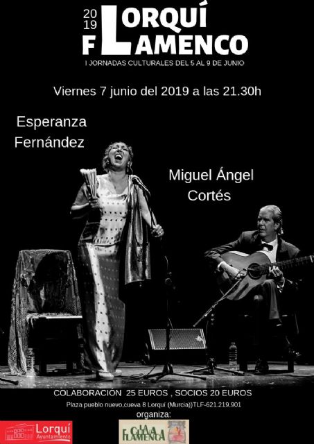El viernes 7 de junio visitará la Cueva Flamenca uno de los principales exponentes del flamenco actual, Esperanza Fernández, acompañada a la guitarra por Miguel Ángel Cortés, con una entrada de 25 euros, a partir de las 21.30 horas.