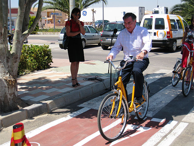 El consejero de Turismo y Consumo, José Pablo Ruiz Abellán, acompañado por la presidenta del Consorcio Turístico ‘Mancomunidad del Mar Menor’ y la alcaldesa de Los Alcázares, Encarnación Gil, asistió hoy a la inauguración del carril bici del municipio. Esta vía, de 11 kilómetros de longitud, discurre entre Los Alcázares y Los Narejos conectando zonas de interés turístico. En el acto, Ruiz Abellán destacó que “la Consejería de Turismo y Consumo, a través del Consorcio Turístico del Mar Menor, ha elaborado un Plan de Viabilidad para valorar la rentabilidad social y viabilidad técnico-económica de la conexión, a través de un carril bici, de las distintas localidades y pedanías del Mar Menor”.