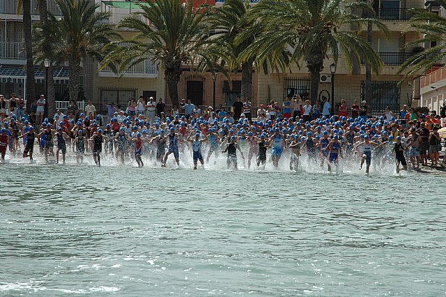 En el Triatlón, participaron 53 clubes procedentes de todala Geografía Española, recorriendo 1500 metros de natación junto al C.N. LosAlcázares, 40 Km. De bicicleta realizando un circuito urbano de 4 vueltas portodo el Municipio de Los Alcázares, pasando a recorrer 10 km. A pie por elPaseo Marítimo.