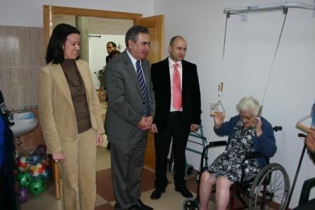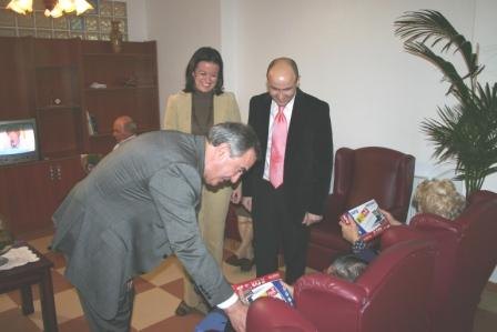 El delegado del Gobierno, Rafael González Tovar, junto con la alcaldesa de Los Alcázares, Encarnación Gil, ha hecho entrega de varios decodificadores de la televisión Digital Terrestre (TDT) a los ancianos de la Residencia “El Palmeral del Mar Menor”.