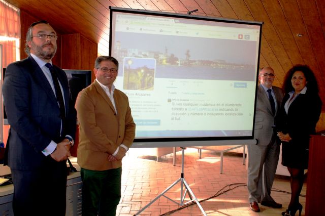 El alcalde de Los Alcázares, Anastasio Bastida, la concejal de Industria, Maite Olmos, el responsable de Iluminación Eficiente de Endesa, David Pinto y el responsable de Implantación de proyectos de Iluminación Eficiente de Endesa, José Enrique Amado, han presentado está mañana la cuenta de twitter que tendrán los vecinos a su disposición para comunicar y dar salida a las posibles incidencias que se produzcan en el servicio de alumbrado público del municipio.