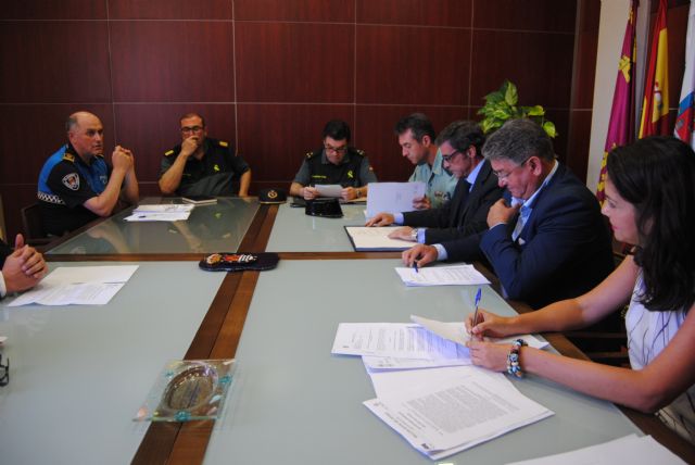 El delegado del Gobierno, Antonio Sánchez Solís, y el alcalde de Los Alcázares, Anastasio Bastida, han presidido esta mañana la Junta Local de Seguridad del municipio para coordinar el dispositivo de seguridad de cara al verano, una época en la que la población se multiplica por cinco en relación al invierno y en la que, según Bastida, hay que prestar especial atención al menudeo, al incremento del número de manteros en el mercado y a pequeños hurtos de distinta naturaleza.