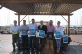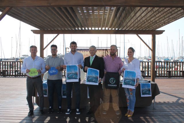 Los concejales de Deportes de los Ayuntamientos de Los Alcázares, San Javier y San Pedro del Pinatar, Nicolás Ruiz Gómez, Estíbaliz Masegosa Gea y Javier Castejón Martínez, el director General de Deportes, Alonso Gómez y el organizador de la prueba, Aitor Jiménez, han presentado esta mañana el circuito de travesías a nado del Mar Menor que se desarrollará durante los próximos meses de septiembre y octubre.