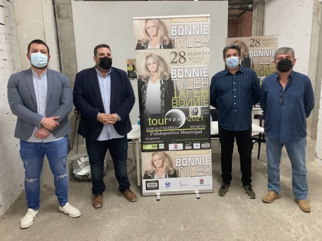 Esta mañana ha tenido lugar la presentación del concierto de Bonnie Tyler a cargo del concejal de Festejos, José Carlos Castejón Pérez, y el concejal de Cultura, Antonio López Campoy. En el acto, realizado en la galería de arte AB9 situada en la capital murciana, también han estado presentes los promotores del evento Manuel Moreno y Manuel Fernández.