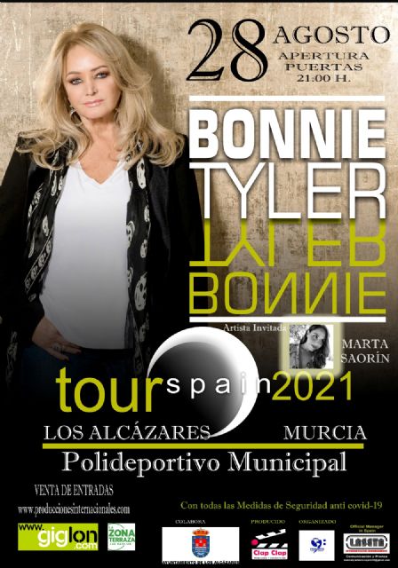 El evento, que tendrá lugar el próximo 28 de agosto a las 21:00 h en el polideportivo municipal de Los Alcázares, contará con la presencia de Gaynor Hopkins, más conocida como Bonnie Tyler. La autora de 'Total Eclipse of the Heart' o 'Holding Out for a Hero', temas que ya son tan icónicos como la cantante, es un símbolo de la música de los años 80.