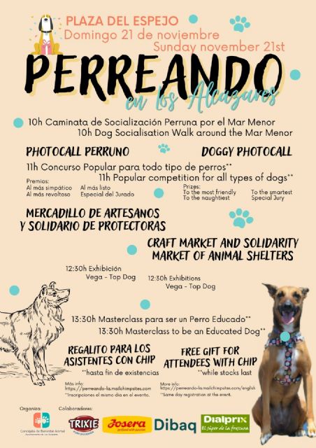 El próximo 21 de Noviembre, desde las 10h en la Plaza del Espejo, Los Alcázares le dará una nueva visión a lo que todos conocemos como “perrear” porque llega “Perreando en Los Alcázares”; un evento muy perruno en el que tiene cabida toda la familia.