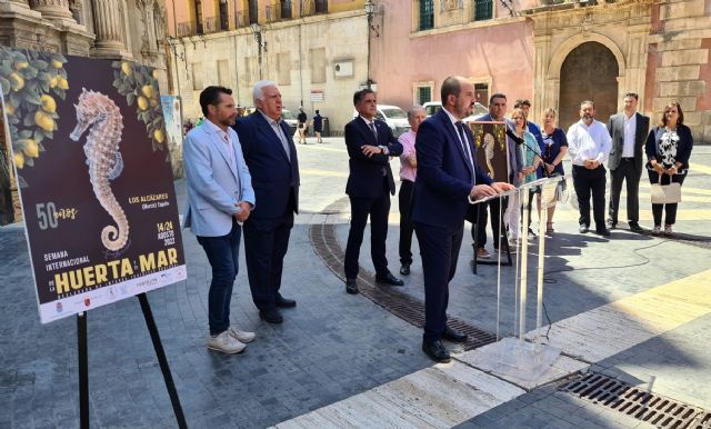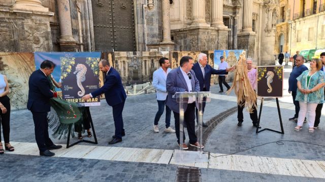 La plaza Cardenal Belluga fue el escenario escogido para dar a conocer la imagen que será la protagonista de la Semana Internacional de la Huerta y el Mar que este año celebra su 50 aniversario.