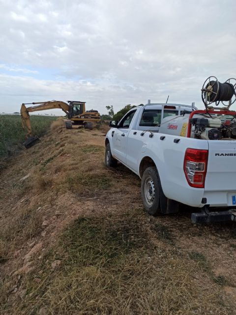La Confederación Hidrográfica del Segura ha comenzado los trabajos de desbroce, limpieza y mantenimiento de un tramo del cauce de la rambla de El Albujón en el término municipal de Los Alcázares.