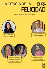 Los Elsa Punset, José María López Nicolás, Miriam Alegría junto con la psicóloga María Nicolau y Curro Cañete, son los invitados al ciclo de conferencias La Ciencia de la Felicidad que se va a celebrar del próximo 28 de octubre al 17 de noviembre de 2022 y que se desarrollará en el Ayuntamiento de Los Alcázares, organizado por su concejalía de Cultura y coordinado por la gestora cultural y periodista, Lola Gracia.