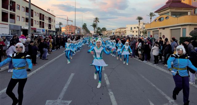 En total 22 comparsas, algunas locales y otras venidas de diferentes puntos de la Región de Murcia, desfilaron por la Avenida de la Libertad de Los Alcázares a cuyos lados se reunieron miles de vecinos y visitantes que no quisieron perderse el espectáculo.