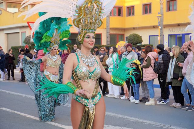 A las 18.15 horas del sábado 25 de febrero comenzaban a desfilar las diferentes comparsas y grupos de baile que entretuvieron al público asistente con sus coreografías, sus trajes, y el ambiente carnavalero que continúo tras el desfile en la Plaza Manuel Floreal Menárguez donde se entregaron los premios a las comparsas ganadoras.