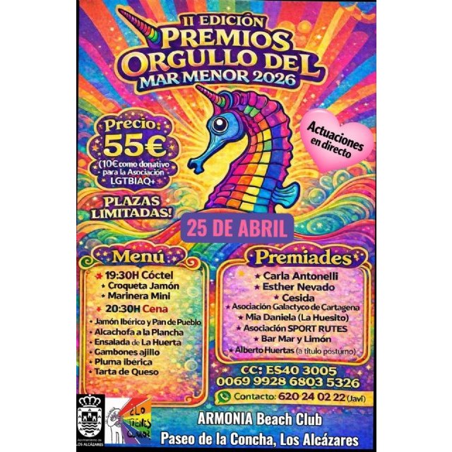 El próximo sábado 25 de abril, Los Alcázares acogerá la II Edición de los Premios Orgullo del Mar Menor, organizada por la asociación Lo Tienes Claro? en colaboración con el Ayuntamiento del municipio.