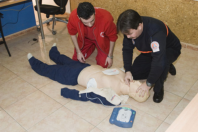 El infarto al corazón es la primera causa de muerte en todo el mundo. La rapidez con la que se debe actuar en estos casos es fundamental dado que la posibilidad de supervivencia disminuye hasta un diez por ciento cada minuto transcurrido sin la aplicación del desfibrilador. Para su aplicación, la localidad cuenta con una treintena de profesionales de Protección Civil, Cruz Roja y voluntarios, que han sido formados por el Servicio de Protección Civil del Ayuntamiento, para manejar de forma eficiente estos aparatos de reanimación cardiaca.