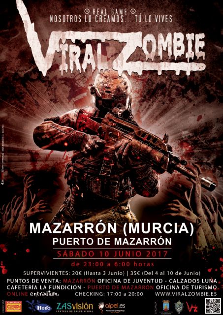 Los organizadores recuerdan que para participar los menores de 14 años deben ir acompañados de un adulto y con autorización firmada. De 15 a 17 años los participantes deben aportar la autorización que pueden descargar en la web www.viralzombie.es. A partir de 18 años la participación es libre. Las entradas pueden obtenerse en los puntos de venta locales autorizados en Mazarrón (Concejalía de Juventud, Calzados Luna y Cafetería La Fundición) y en Puerto de Mazarrón (Oficina de Turismo).