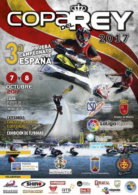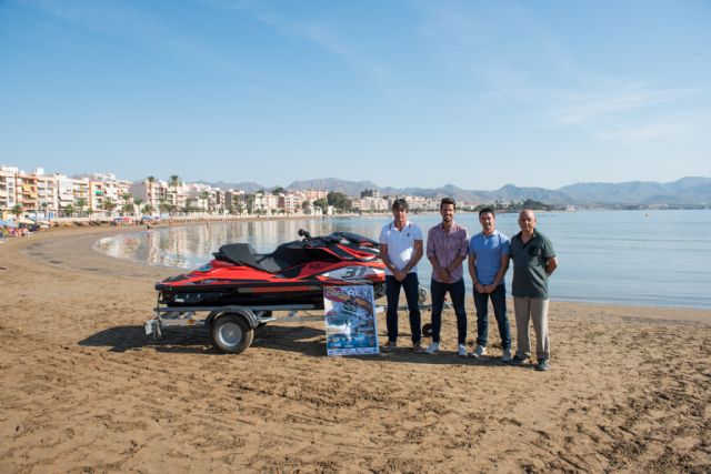 Por segundo año consecutivo, las aguas de la Bahía de Mazarrón serán sede de la Copa del Rey y última prueba puntuable del Campeonato de España de Motos de Agua. En esta ocasión será la playa del Puerto el lugar que acoja la competición durante el fin de semana del 7 y 8 de octubre. Este evento deportivo ha sido presentado este lunes por el concejal de Deportes, Patricio Sánchez, junto a los presidentes de las federaciones murciana y nacional de Motonáutica, Dionisio Baño y José Miguel Martínez y del director gerente del Puerto Deportivo, Juan Marín.