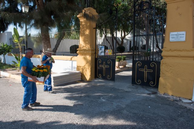 Los cementerios municipales multiplican estos días el número de visitantes con motivo de la festividad de Todos los Santos. Por ello las concejalías de Parques y Jardines y Servicios del Ayuntamiento de Mazarrón han llevado a cabo tareas de mejora con el objetivo de facilitar el acceso y ofrecer una mejor imagen. Parques y Jardines ha colocado más de 700 plantas ornamentales, 400 en el camposanto de Mazarrón y 300 en el de Puerto de Mazarrón. El 50% de las plantas colocadas son suministradas por el Vivero Municipal. Asimismo, se han limpiado las zonas verdes de los interiores de los cementerios de Mazarrón y Puerto