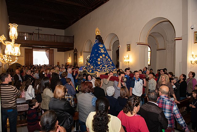 La imagen de la Purísima Concepción de Bolnuevo ya reposa en la iglesia de San Andrés de Mazarrón tras ser trasladada a hombros por sus fieles desde la ermita de Bolnuevo. La imagen fue acompañada por centenares de mazarroneros hasta el jardín de la Purísima donde fue recibida por las autoridades civiles y religiosas. Seguidamente fue trasladada hasta el templo donde permanecerá toda la semana hasta el domingo 18 de noviembre cuando parta en romería de regreso a su ermita.