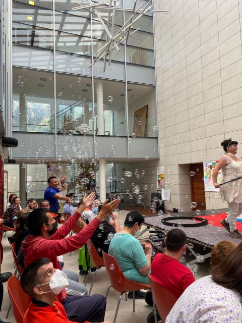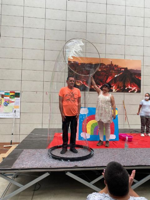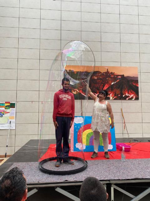 Fue una mañana muy amena, los chicos y chicas del Centro pudieron disfrutar mucho de la obra `País de los cuentos y las burbujas´ una actuación muy interactiva donde las burbujas llenaron de magia la mañana.