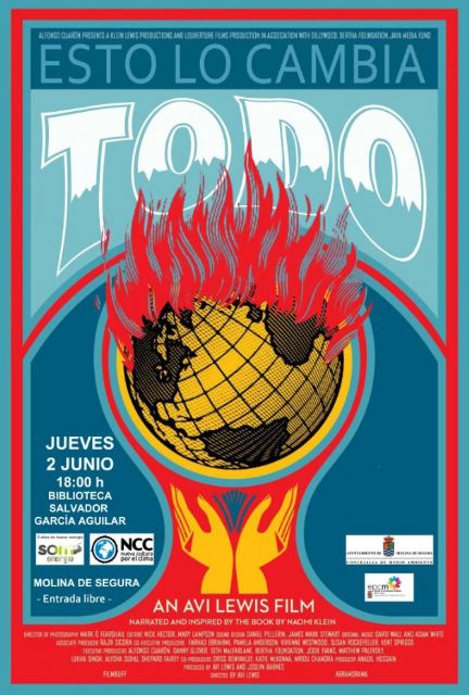La Concejalía de Medio Ambiente del Ayuntamiento de Molina de Segura, en colaboración con la Concejalía de Participación Ciudadana, y en el marco de los Presupuestos Participativos, organiza la actividad Qué puedo hacer yo frente al cambio climático, con la proyección del documental Esto lo cambia todo, narrado y escrito por la periodista e investigadora canadiense Naomi Klein, el jueves 2 de junio, a las 18.00 horas, en la Biblioteca Salvador García Aguilar (en Avenida del Chorrico, n° 44), dentro del programa Cuida Molina, Vive Molina. Esta actividad que forma parte del programa de actos de conmemoración del Día Mundial del Medio Ambiente.