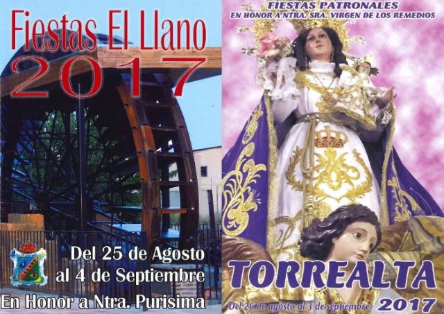 Ambas pedanías ponen en la calle el sábado sus tradicionales desfiles de carrozas y el domingo la procesión de sus respetivas patronas. En El Llano de Molina el viernes tendrá lugar la "Fiesta de los Años 60, 70 y 80" en la Plaza de la Iglesia, a cargo de Pedro Antonio Hurtado, y Torrealta acogerá el sábado un concierto en directo de Los Chunguitos.