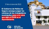 01/11/2023 El Gobierno de Molina de Segura consigue pagar las nóminas de los trabajadores municipales pese a la ruina que dejó el PSOE en el Ayuntamiento