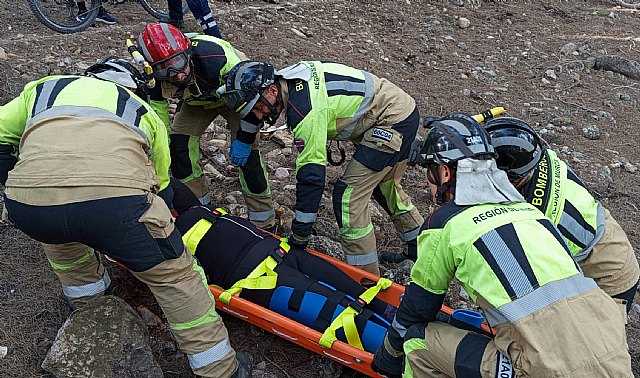 Debido a las heridas en una pierna que presentaba la accidentada, una mujer de 54 años y dado que no podía desplazarse por sus medios fue necesaria la actuación de bomberos del Consorcio de Extinción de Incendios y Salvamento de la Región de Murcia, pues la ambulancia tampoco podía acceder hasta el mismo lugar del accidente.