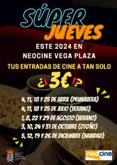 01/04/2024 La Concejalía de Cultura y Neocine Vega Plaza inician el programa Los Súper Jueves de Cine con entradas a 3 euros a partir del día 4 de abril