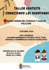 18/04/2024 La Concejalía de Turismo organiza el taller Conociendo a los huertanos el domingo 21 de abril en el Museo Horno del Concejo y Casa del Folclore de Molina de Segura