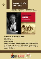 La presentación del libro Israel. Del mito al crimen, del escritor Pedro Costa Morata, tendrá lugar el lunes 28 de abril, a las 20.00 horas, en la Biblioteca Salvador García Aguilar (en Avenida del Chorrico, n° 44). Presenta y acompaña al autor el columnista de La Opinión y profesor jubilado Diego Jiménez García.