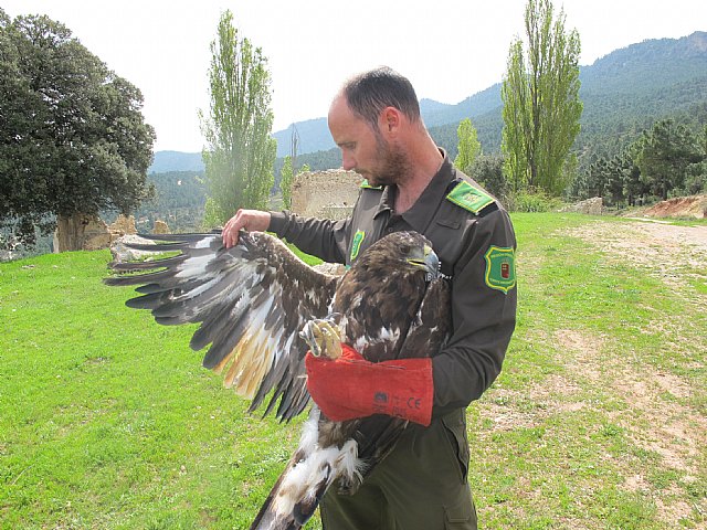 La Consejería de Agricultura y Agua liberó hoy un ejemplar de águila real en la sierra de Moratalla, tras ser atendido en el Centro de Recuperación de Fauna Silvestre ‘El Valle’.