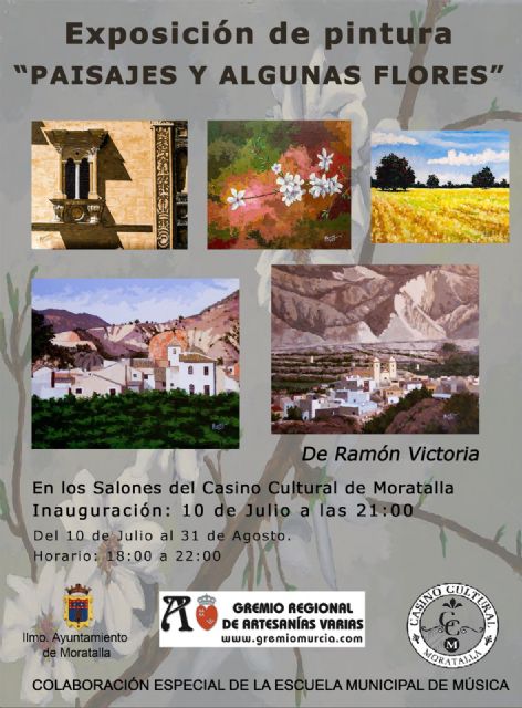 La primera de ellas "Paisajes y algunas flores" del pintor murciano Ramón Victoria, que después de tres meses sin poder darle la inauguración que se merece este viernes día 10 de julio se podrá inaugura y ver en el Casino Cultural de Moratalla.
