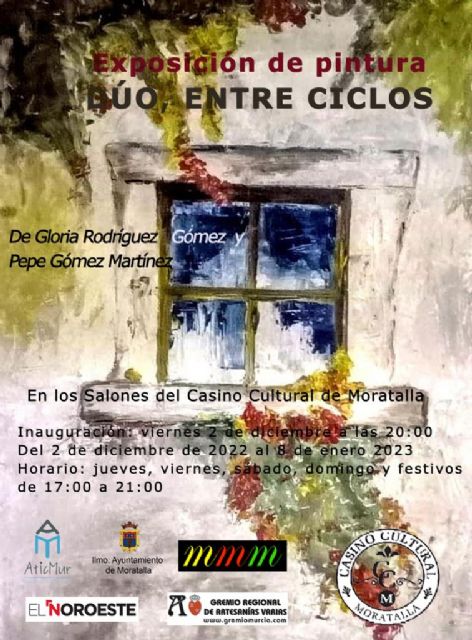Hoy viernes día 2 de diciembre, a las 20 horas, el Gremio Regional de Artesanías Varias inaugurarán la exposición de la pintora moratallera Gloria Rodríguez Gómez, en los salones de exposiciones del Casino Cultural de Moratalla, "DUO, ENTRE CICLOS", de Gloria Rodríguez Gómez.