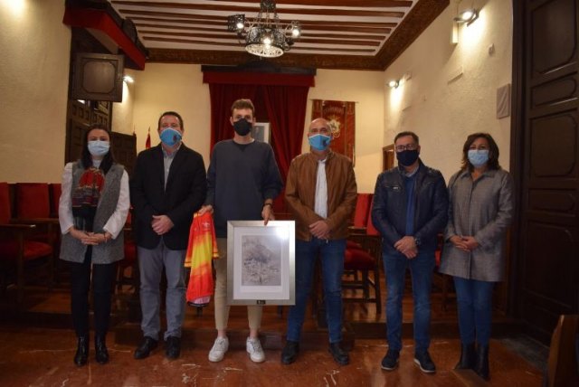 El alcalde de Mula, Juan Jesús Moreno, junto al concejal de Deportes, Vicente López, y miembros de la corporación municipal participaban este pasado viernes en la recepción oficial del ciclista muleño José María García Soriano, Campeón de España de Persecución por equipos de ciclismo en pista y quien acaba de fichar por el club murciano Valverde Team-Terra Fecundis.
