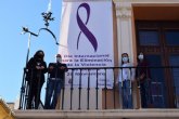24/11/2020 Un gran lazo violeta da visibilidad desde la fachada del Ayuntamiento al Día Internacional contra la Violencia de Género