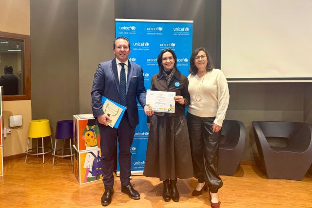 El reconocimiento fue recogido por el alcalde de Mula, Juan Jesús Moreno, y la concejala de Servicios Sociales e Infancia, Antonia Gabarrón, en un acto institucional al que asistieron, entre otras autoridades, la presidenta de UNICEF Comité Autonómico de Murcia, Carolina Olivares Serrano; la consejera de Política Social, Familias e Igualdad de la CARM, Conchita Ruiz Caballero; el secretario general de la Federación de Municipios de la Región de Murcia, Antonio Moreno García; y el alcalde de San Javier, José Miguel Luengo Gallego, junto a representantes institucionales y miembros de UNICEF.