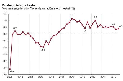 El Producto Interior Bruto (PIB) de la economía española ha registrado un crecimiento intertrimestral del 0,4% en el tercer trimestre del año, según los datos publicados por el Instituto Nacional de Estadística (INE). De esta forma, España encadena 24 trimestres de crecimiento económico ininterrumpido.