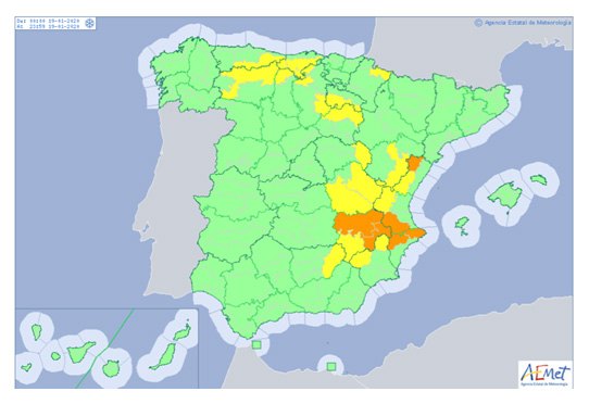 En las provincias con niveles de riesgo naranja y amarillo, es imprescindible planificar el viaje y consultar el pronóstico meteorológico, así como el estado de circulación de las carreteras. Se podrá restringir la circulación a determinados vehículos y establecer, en su caso, cortes preventivos.