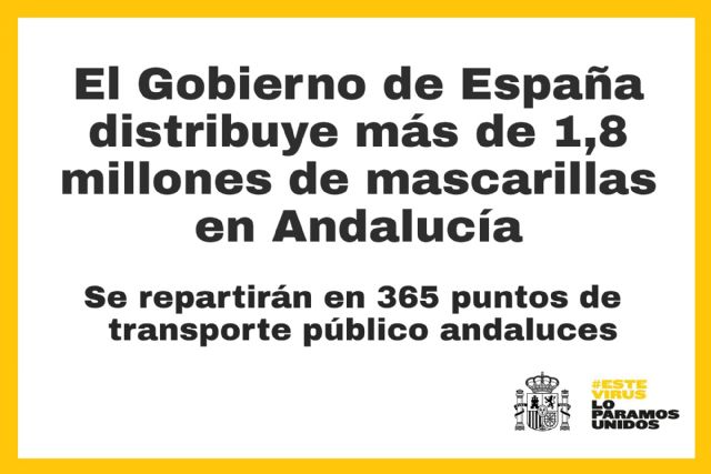 Así, en Almería el reparto de las 160.000 mascarillas comenzará a las 6:45 en la estación Intermodal de la capital, mientras que en Cádiz serán 33 los puntos de distribución en 18 municipios, como la Plaza de España de la capital gaditana, estación de tren de Jerez de la Frontera y San Fernando, así como otras actuaciones previstas en estaciones de Algeciras, Puerto Real, San Fernando y La Línea de la Concepción.
