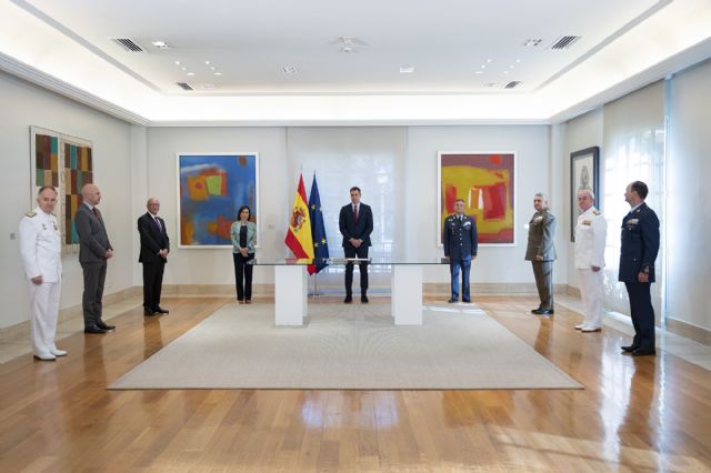 El presidente del Gobierno ha firmado la nueva Directiva de Defensa Nacional 2020 en un acto celebrado en el Complejo de La Moncloa, al que han asistido la ministra de Defensa, Margarita Robles; el jefe de Estado Mayor de la Defensa, Miguel Ángel Villarroya; el jefe de Estado Mayor del Ejército de Tierra, Francisco Javier Varela; el jefe de Estado Mayor de la Armada, Teodoro López Calderón, y el jefe de Estado Mayor del Ejército del Aire, Javier Salto, así como el secretario general de Política de Defensa y el secretario y el subsecretario de Estado de Defensa.