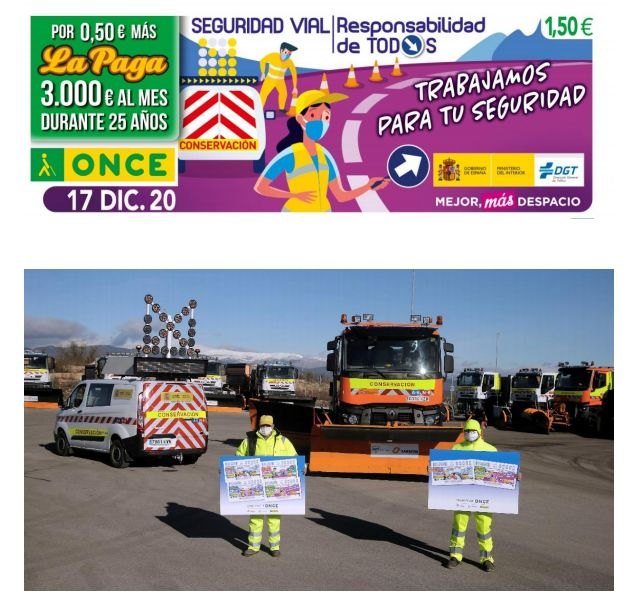 Con motivo de la campaña, la ONCE pone en circulación 22 millones de cupones, desde el día 14 al 17 de diciembre, dedicados a potenciar la corresponsabilidad entre las administraciones y los ciudadanos para avanza hacia unas carreteras más seguras, a través de estos eslóganes: "Usa cadenas o neumáticos de invierno", "Al volante, alcohol cero, cero", "En moto, mejor con guantes y airbag" y "Trabajamos por tu seguridad".