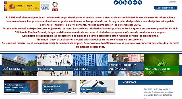 Todo el personal del SEPE está realizando el máximo esfuerzo para reanudar la actividad lo antes posible y con totales garantías de seguridad.