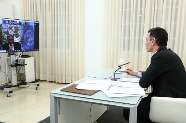 El presidente del Gobierno, Pedro Sánchez, ha participado en la reunión virtual de la red de líderes por un multilateralismo reforzado con el secretario general de las Naciones Unidas, que ha impulsado junto al primer ministro de Suecia, Stefan Löfven.