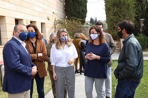 La ministra de Trabajo y Economía Social, Yolanda Díaz y la presidenta del Govern, Francina Armengol, acompañadas del secretario de Estado de Empleo y Economía Social, Joaquín Pérez Rey y el conseller de Modelo Económico, Turismo y Trabajo, Iago Negueruela, han mantenido esta mañana una reunión con los representantes de los sindicatos de CCOO y de UGT de hostelería, y con diversas trabajadoras representantes de las camareras de piso en Mallorca, para abordar la problemática que afecta a este colectivo, y que en muchas ocasiones perjudica su salud a lo largo de su vida laboral, y establecer así una hoja de ruta que permita mejorar sus condiciones de trabajo.