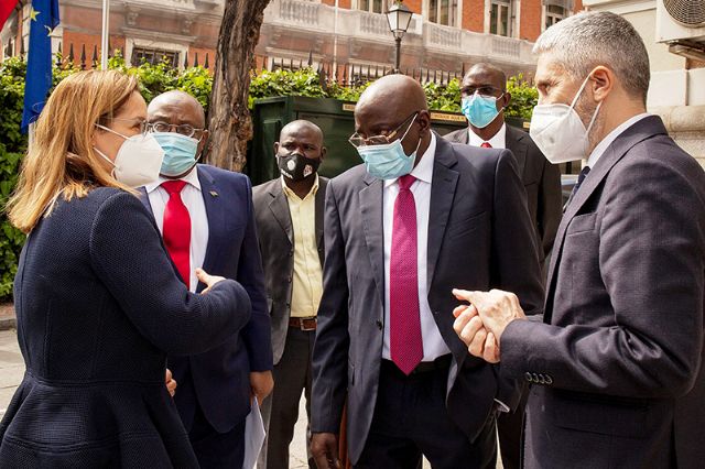 El ministro del Interior, Fernando Grande-Marlaska, y su homólogo gambiano, Yankuba Sonko, han valorado la cooperación en materia migratoria y especialmente la labor coordinada que desarrolla la Fuerza Conjunta de lucha contra la Inmigración Irregular de Gambia, que está logrando resultados notables en la persecución de las redes de tráfico de seres humanos.