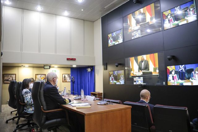 La ministra de Defensa, Margarita Robles, ha presidido en la Escuela de Guerra un solemne acto de homenaje a las 27 víctimas del COVID- 19 de las Fuerzas Armadas con motivo de la conmemoración del 1º aniversario de las operaciones militares de lucha contra la pandemia.